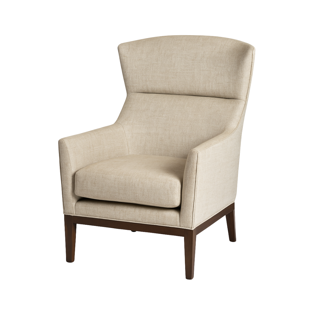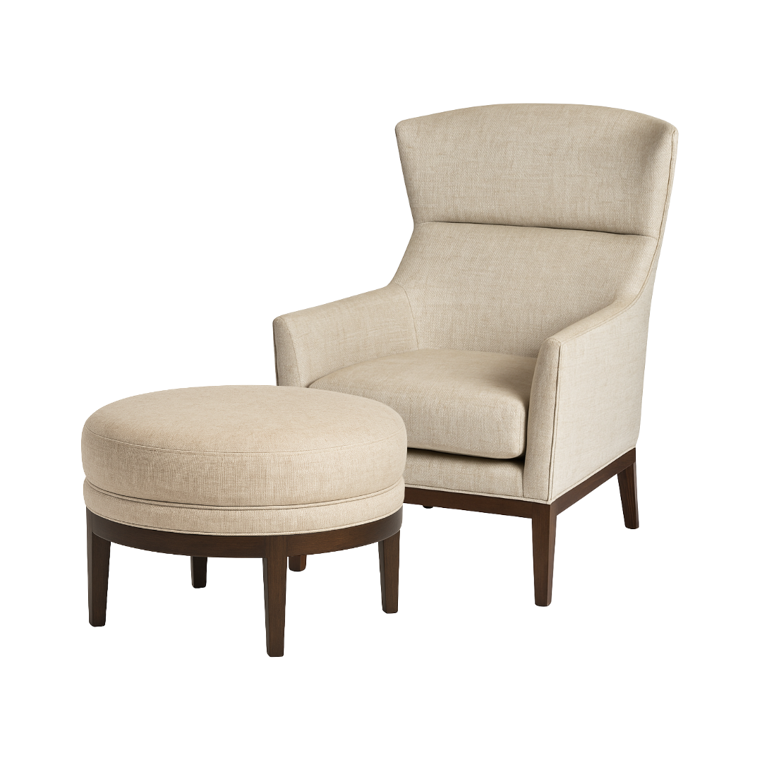 This updated wing chair features a unique silhouette inspired from mid century style with a contemporary twist paired with its oval shaped ottoman perfect for pulling off an elegant room together.