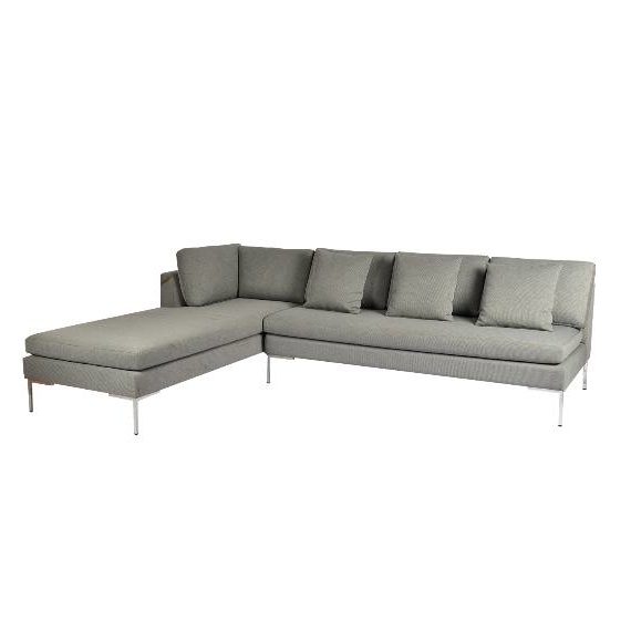 It's light with narrow but tight cushioned arms and backs to maximize the seating area of this L-shaped sofa. This modern style L-shaped sofa features a well cushioned seat in typical "boxy" form for comfortable lounging and sturdy metal legs.