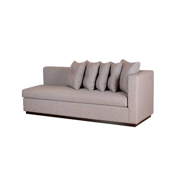 This modern daybed delivers that wide, deep, comfortable plush seat expected in a daybed for extended lounging. Upholstered in a sophisticated linen fabric, this piece of furniture will last for years. It features a 5 pcs. throw pillow set, a wide cushioned seat, a low back and arm profile and a wooden base finished in warm stain finish that contrasts with your sofa fabric.