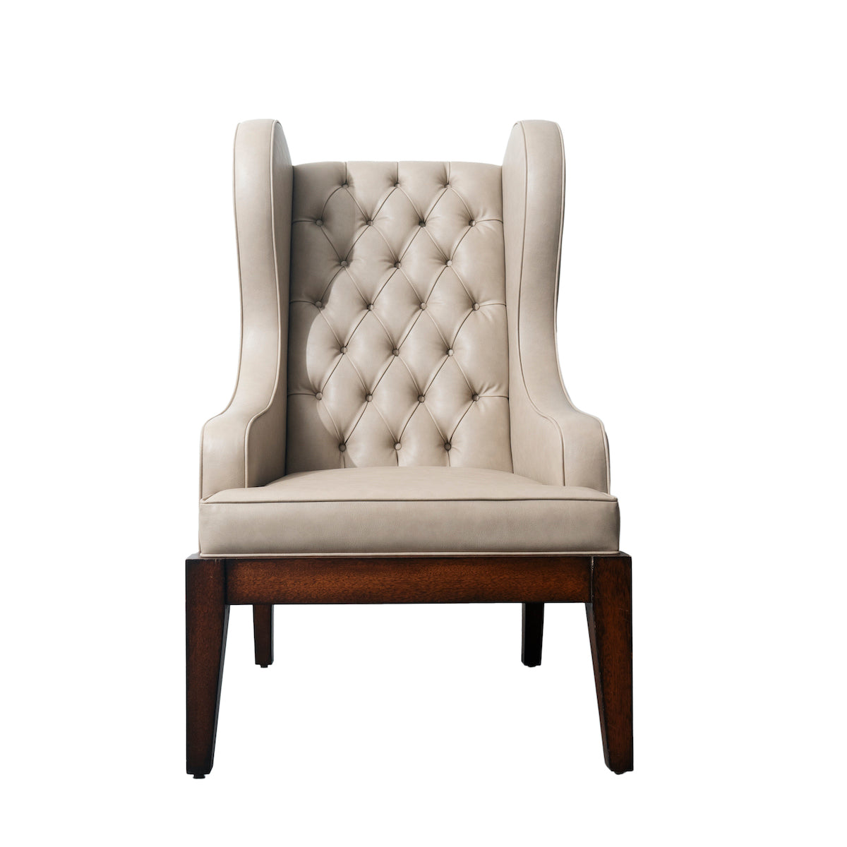 This Sophisticated and contemporary wing chair offers an oversized comfort for reading or relaxing. It's tall and imposing size makes it ideal as an accent piece in a living room or bedroom.