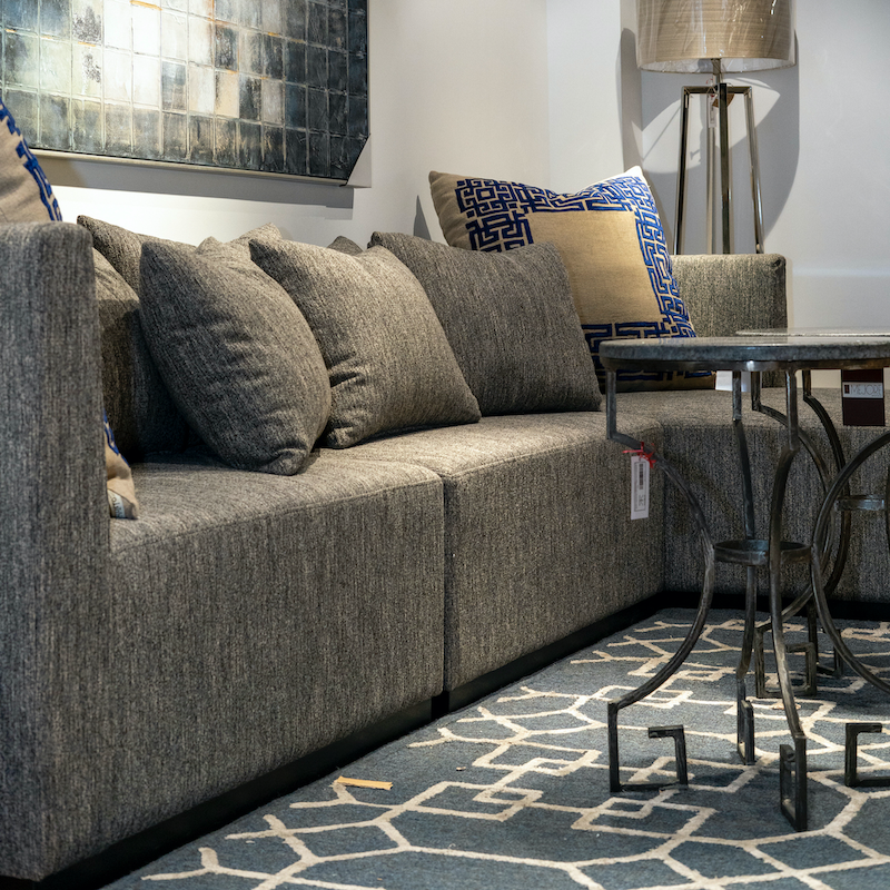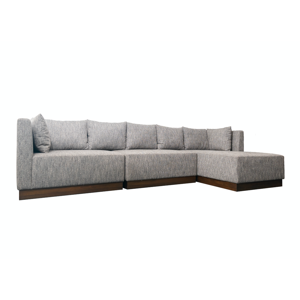 The Anthony Sectional Sofa, clean and contemporary created for a large living room. Its long and visible wooden base gives it a nice and subtle accent while the accompanying plain pillows add for great comfort and flexibility.