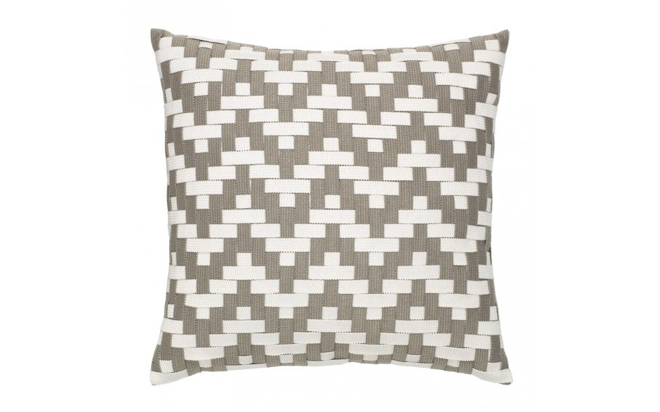 Hand woven in shades of alabaster gray and white, this pillow offers an indulgently textured feel and a sophisticated look. Soft, solution-dyed Sunbrella Acrylic fabric is fade, water & stain resistant for outdoor durability; Filled with a sealed insert of 100% polyester fiber; Tailored, hidden zipper;