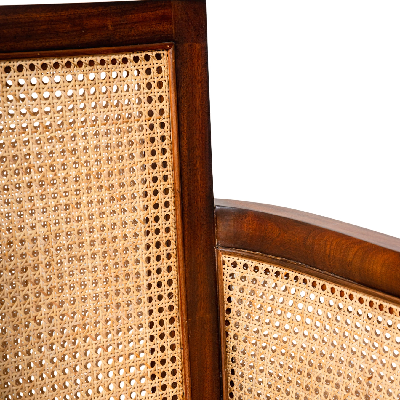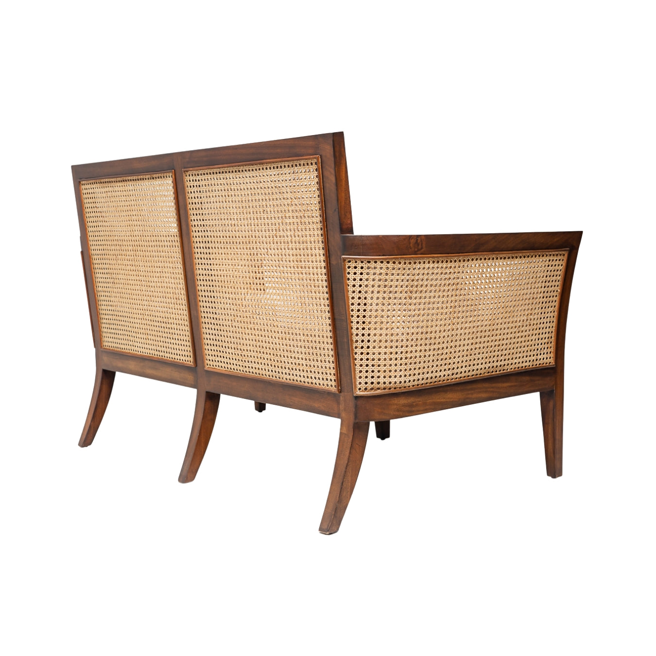 A cushioned settee with contemporary clean lines is contrasted by the signature Mejore double cane weaving (solihiya) that adds a traditional touch to this chair. Two large removable backrest pillows add comfort and design flexibility while the double weaving allows the chair to be displayed on practically any angle from the house.
