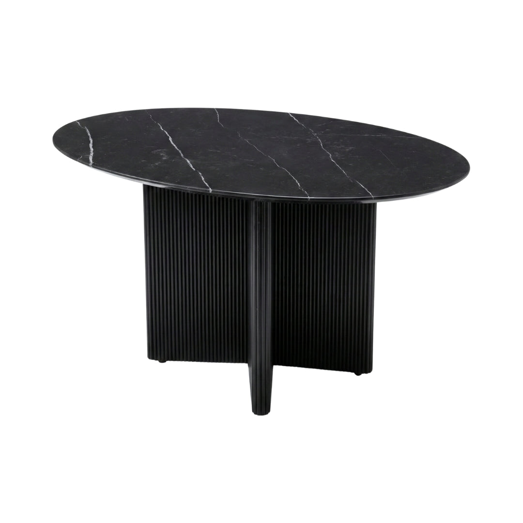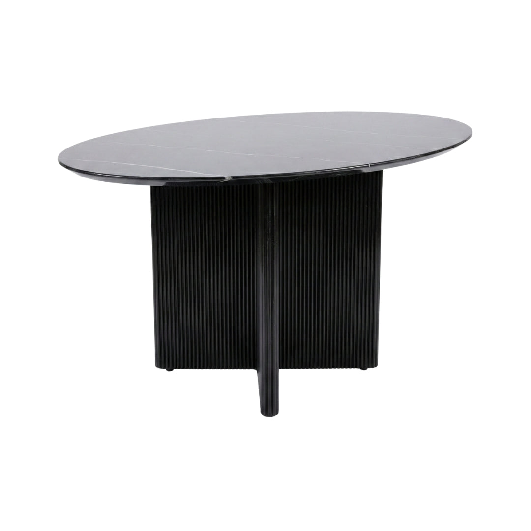 Benson Oval Dining Table with Reeded X-Base and Stone Top