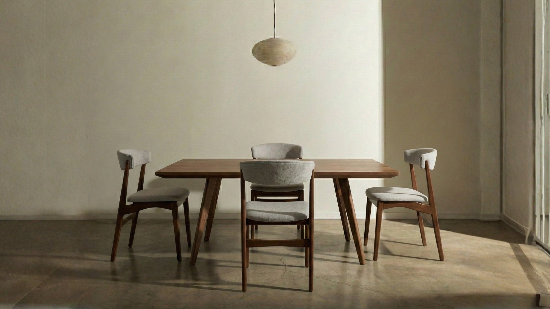 Inspired by Mid-Century Modern design, the Molino Dining Table brings timeless character to your dining space. It features a refined wooden top with beveled under-edges and signature angled legs, creating a sophisticated yet relaxed silhouette perfectly suited for the contemporary home.